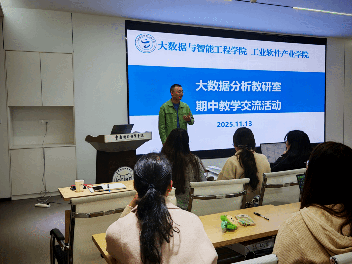 活动伊始,教研室主任点明活动背景:期中阶段是教学质量的检验站,也是优化后续教学的黄金期。结合大数据专业课程内容更新快、实践要求高的特点,亟需通过交流碰撞提升教学针对性。随后,教师代表依次分享教学心得。其中,杨瑞梅老师结合《数据库原理与应用》的课程特点,重点分享PPT设计优化经验:针对课程中SQL语句、表结构设计等知识点,易因文字堆砌导致学生注意力分散的问题,提出“文字做减法,逻辑做加法”原则——单页PPT仅展示核心文字,多用流程图、代码示例图替代大段文字。向灿老师则围绕《操作系统原理》的教学痛点,分享“让学生听懂”的实操方法:课前把抽象概念转化为直观流程,课中让学生动手模拟实验,在操作中理解原理,课后提供实验资料供学生复盘。许荠方老师围绕《多元统计分析》重点分享对于抽象模型,可以采用实际案例拆解知识点,并用AI将分析过程制作成可视化网页,动态展示数据建模步骤与结果,大幅降低学生的理解难度。