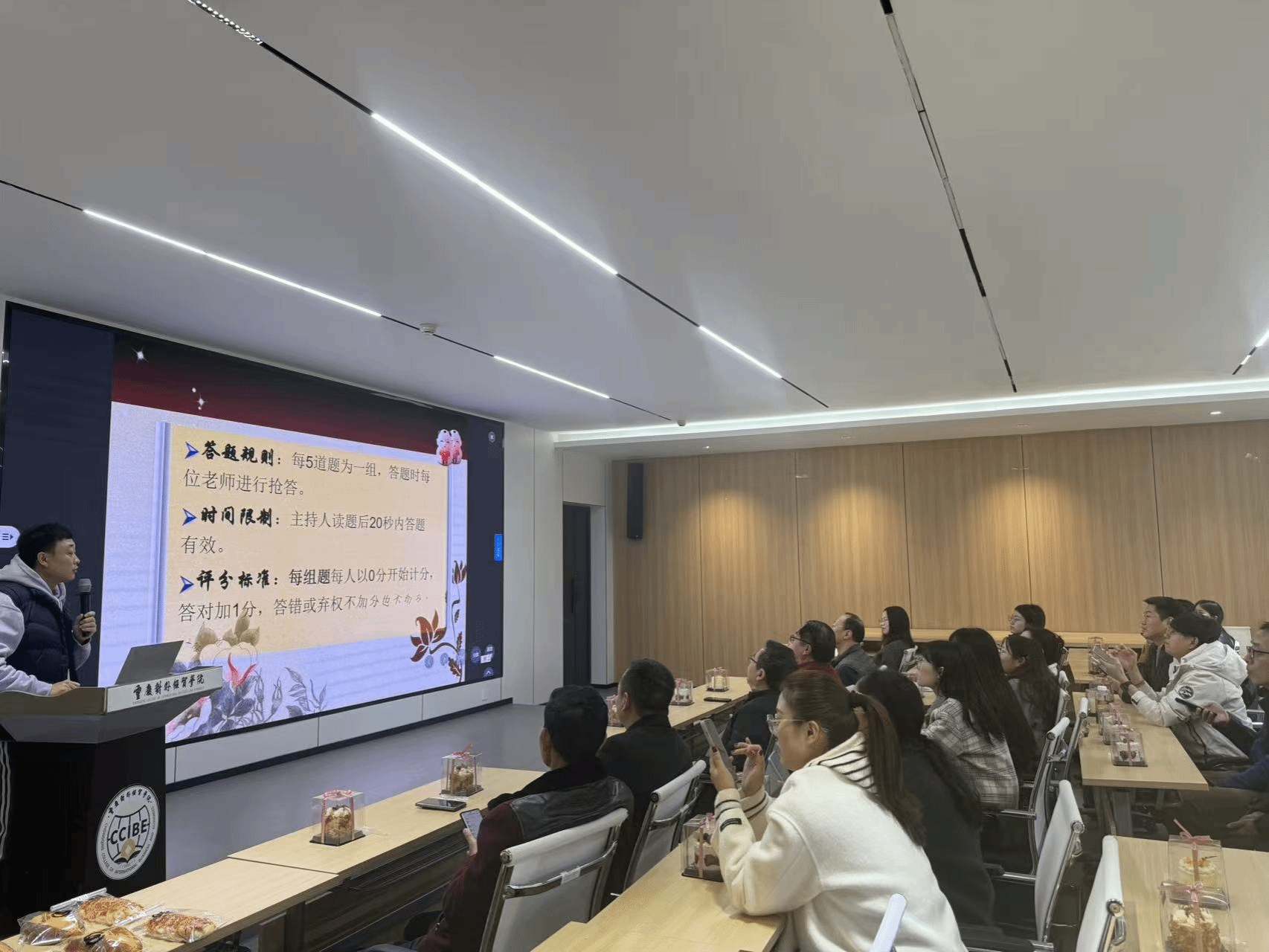 首个环节知识抢答赛迅速点燃气氛。题目涵盖科学知识与生活趣题,教职工们反应敏捷、踊跃参与,答对者获赠小礼品,会议室里欢声笑语不断,有效拉近了彼此距离。抢答过程中,教职工们反应迅速、踊跃抢答,有的凭借扎实的专业积累精准作答,有的用幽默的回答引得全场开怀大笑,学院工会老师为答对的教职工及时送上小礼品,每一份奖品都承载着学院的心意。