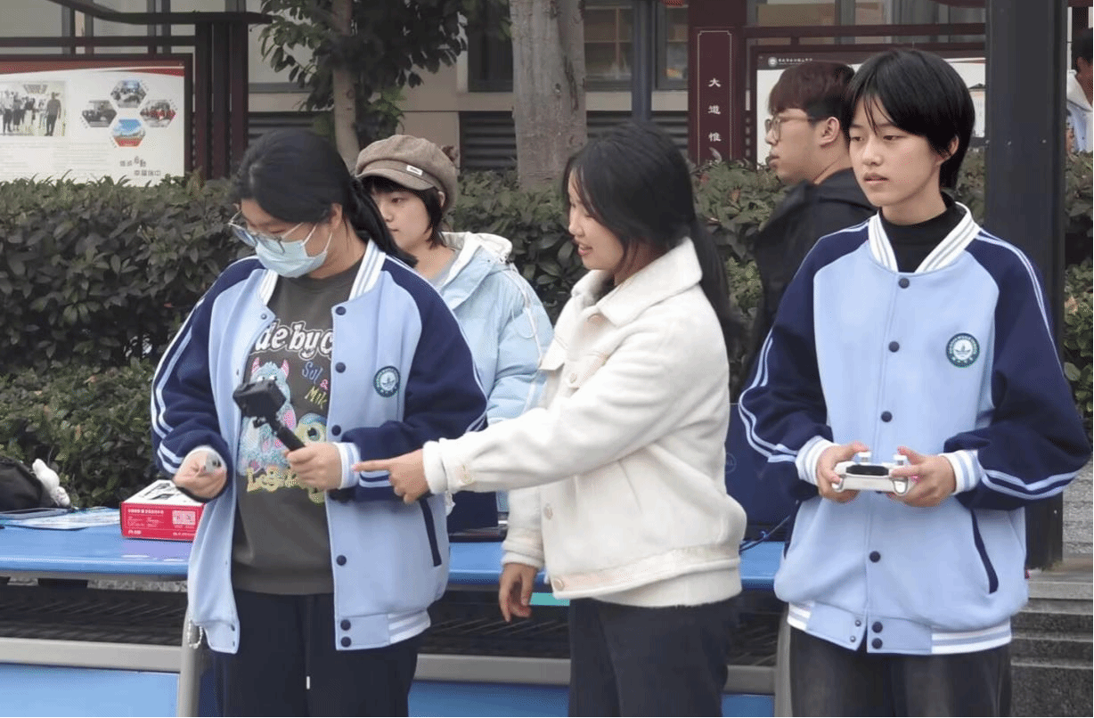 开幕式期间,学院学生提前抵达现场进行设备调试,以确保展示与体验环节顺利进行。随后,他们向瑞山中学的同学们生动演示了人形机器人、无人小车、格斗机器人等多项前沿科技设备,并邀请同学们亲身操作体验,现场互动气氛热烈。