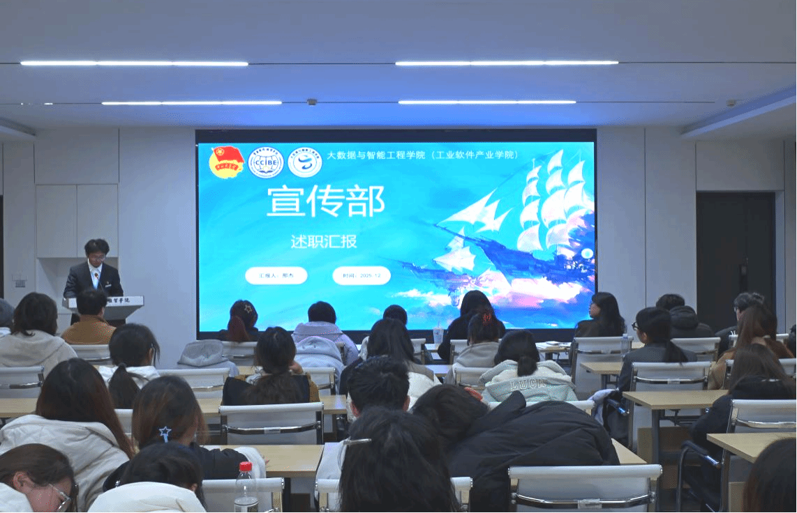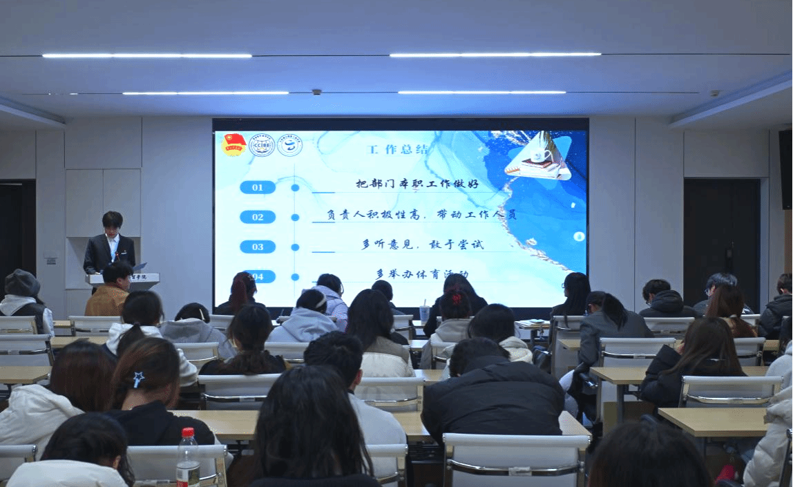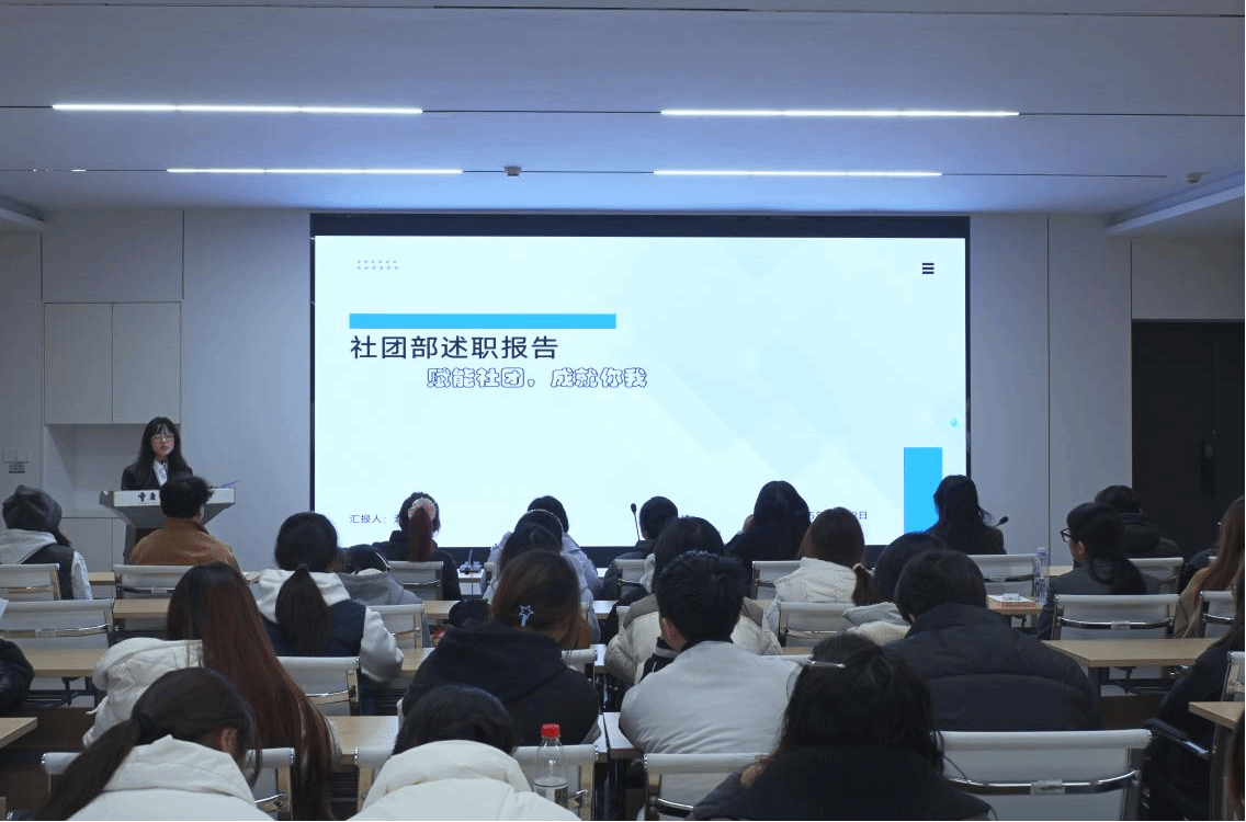 随后,各部门负责人依次进行述职汇报。大家围绕职能履行、工作推进与特色活动等方面,以详实数据和具体案例展现本学期工作“成绩单”,并明确下一步工作的“路线图”,充分体现了学生干部的责任意识与担当精神。