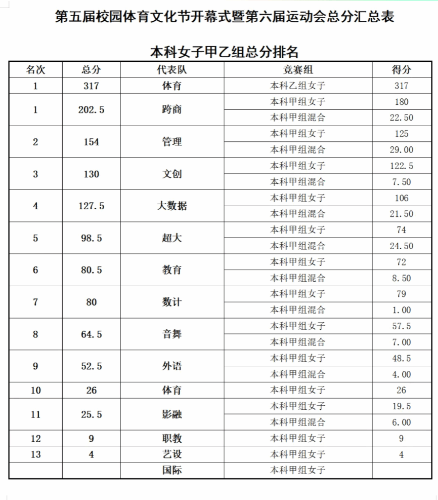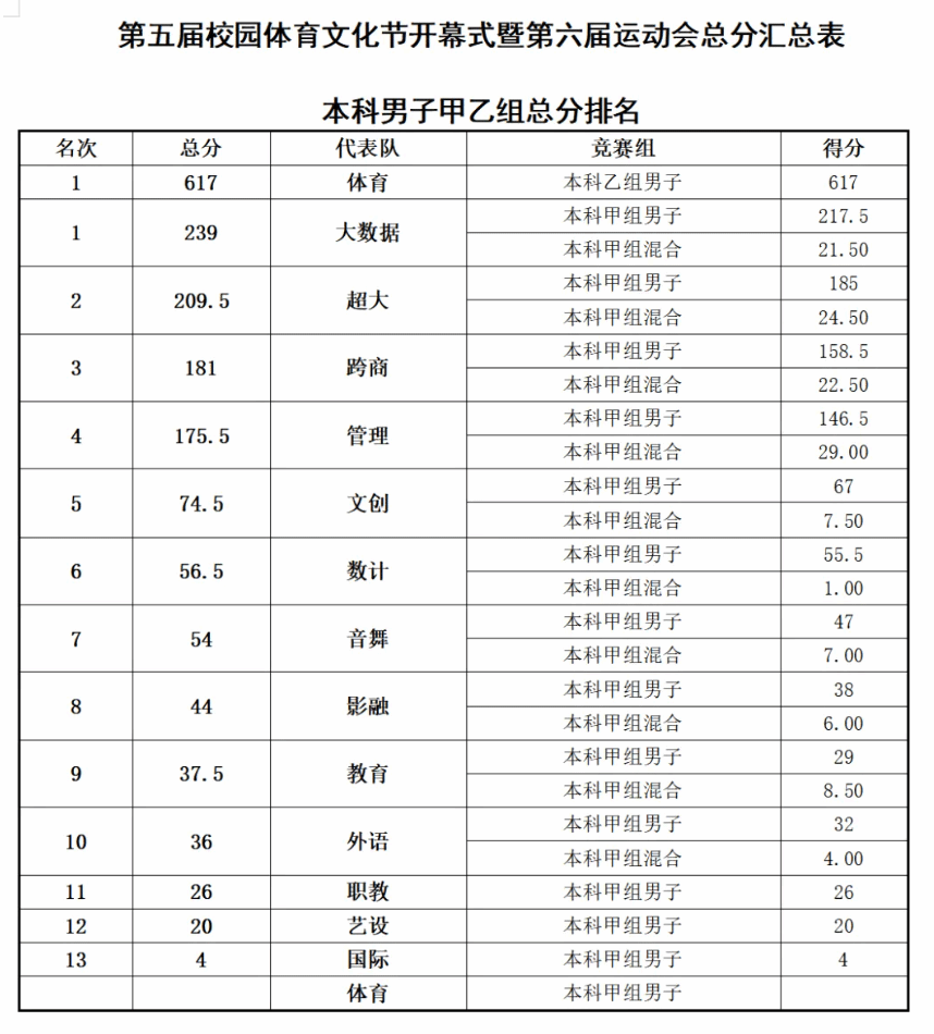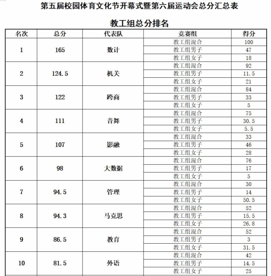 赛场上,学院健儿奋勇争先、不畏强手;场边师生同心协力、呐喊助威,赛场氛围热烈而团结。经过激烈角逐,学院最终斩获学生男子团体第一名(卫冕冠军)、学生女子团体第四名、教工团体第六名、啦啦操比赛第四名,并荣获优秀组织奖,以优异成绩彰显了学院强大的凝聚力与战斗力。