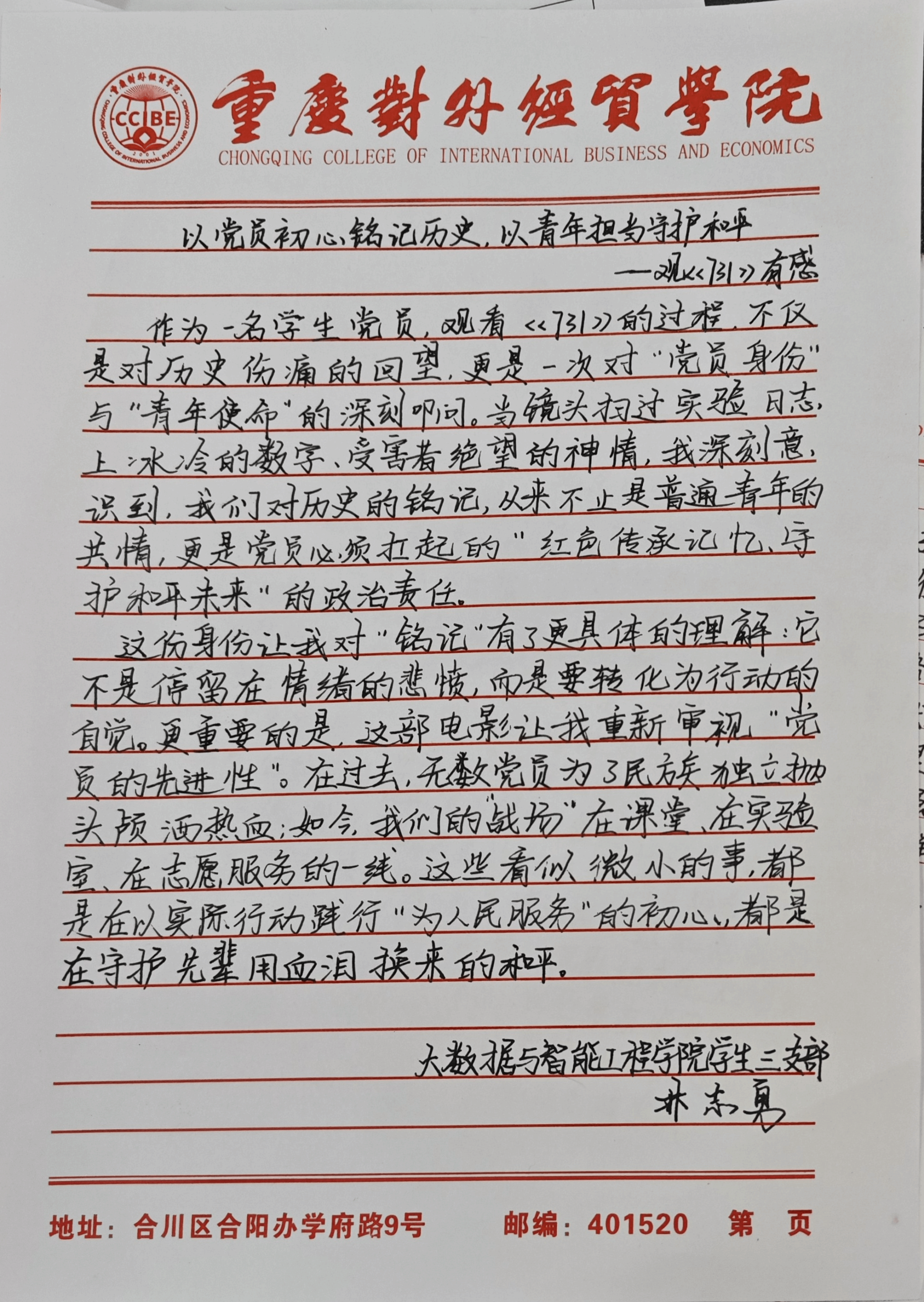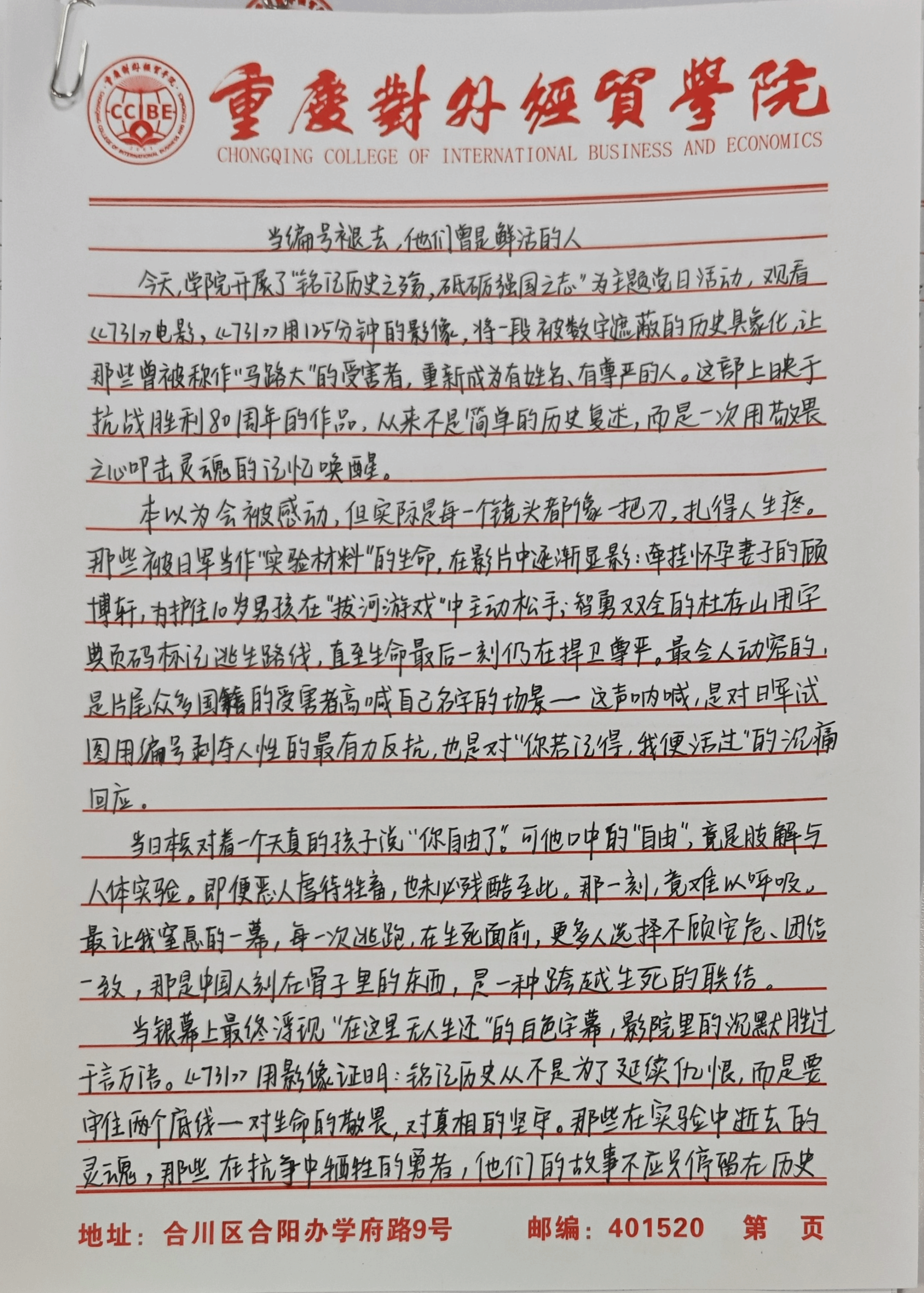 此次主题党日通过“观、思、谈”的深度融合,让师生党员接受了一次深刻的爱国主义教育与精神洗礼,引导师生党员深刻感悟中华民族抗战精神,从历史中汲取前行力量,在教育教学、学习、科研中践行党员担当。下一步,学院党总支将持续以历史教育为重要抓手,不断创新教育形式,组织“学史力行”系列实践活动,确保学习教育取得实效,推动师生党员将爱国情怀转化为立足岗位、奋发作为的实际行动。
