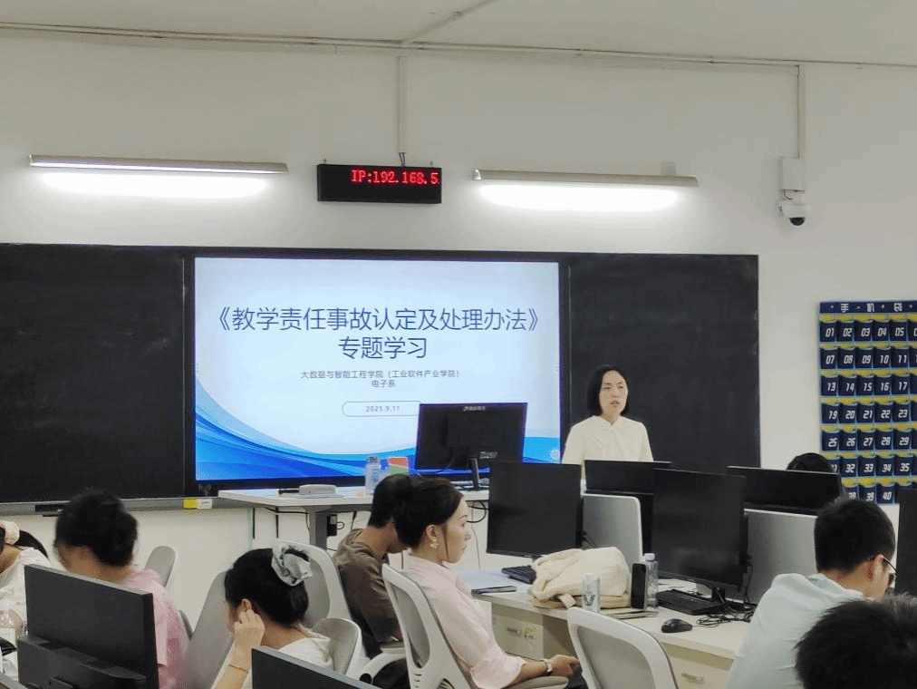 9月11日,电子系于A9417教室组织全体专任教师,开展《教学责任事故认定及处理办法》(渝贸院发〔2025〕19号)专题学习。会议由系教研室主任秦廷婷、钟育秀主持讲解,旨在通过明确教学事故认定标准与处理要求,强化教师责任意识,为保障教学秩序与质量筑牢基础。