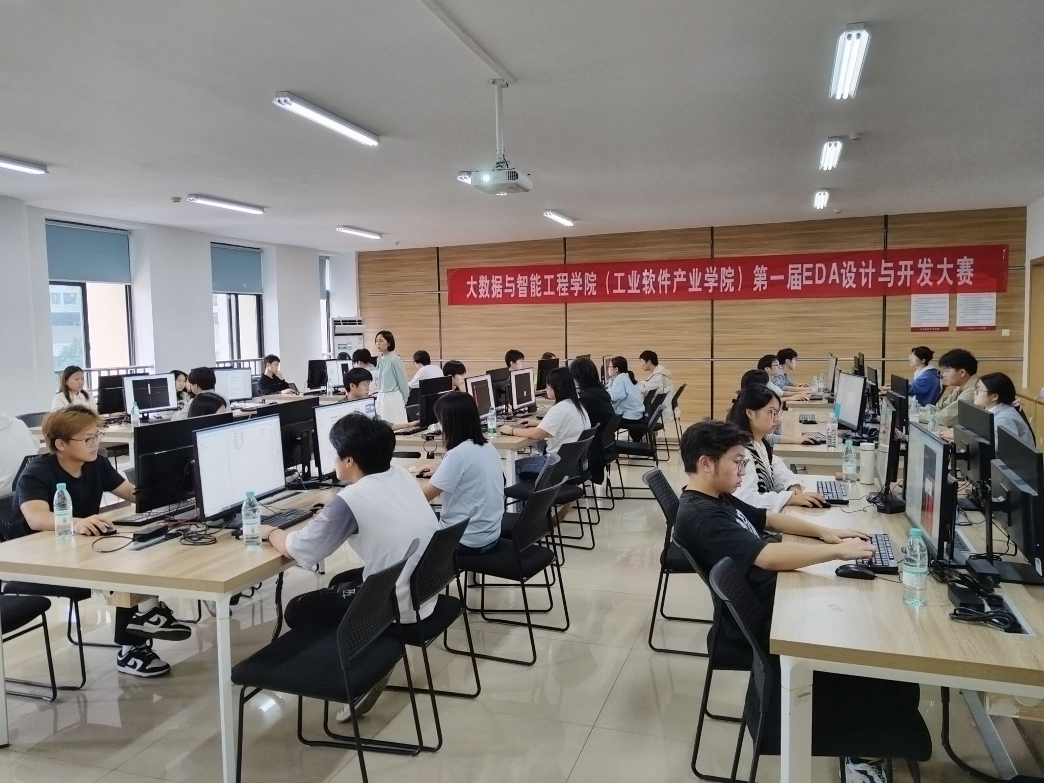 本次赛事累计吸引全院近百名学生参与。10月16日比赛当日,赛事教室严格执行“一人一机、独立竞技”规则,选手需在5小时内完成全部任务。