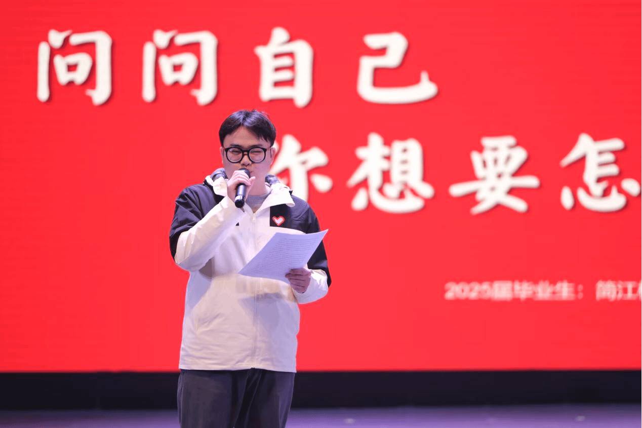而另一位毕业生简江枫,分享主题“问问自己,你想要怎样的未来”,分享了在多个学生干部岗位中培养的责任感,如何影响了他的人生选择,并讲述了投身西部计划后,在参与基层治理、服务青少年成长过程中的触动与收获。他引导学弟学妹跳出专业对口的常规路径,思考个人价值与社会需要的结合点,强调清晰的自我认知与主动选择的重要性,鼓励大家“在更广阔的土地上,定义属于自己的未来”。