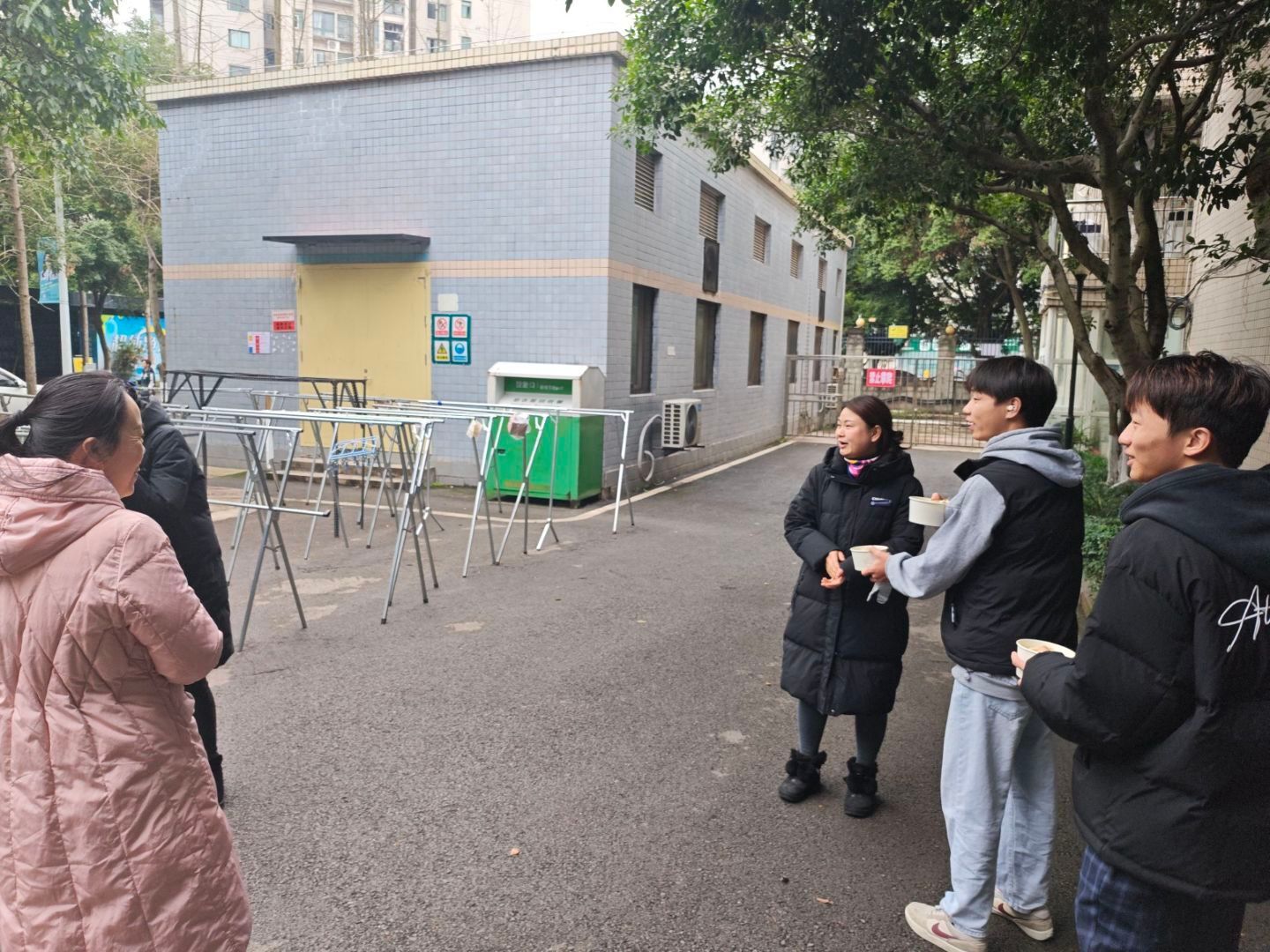 饺子出锅,热气蒸腾。同学们分头行动,一队将热饺送至学生社区周边的保安亭、保洁休息室、宿管处,向默默坚守的校园工作者道声“辛苦了”;另一队则与同窗分享,饺香袅袅、融化陌生、传递温暖。